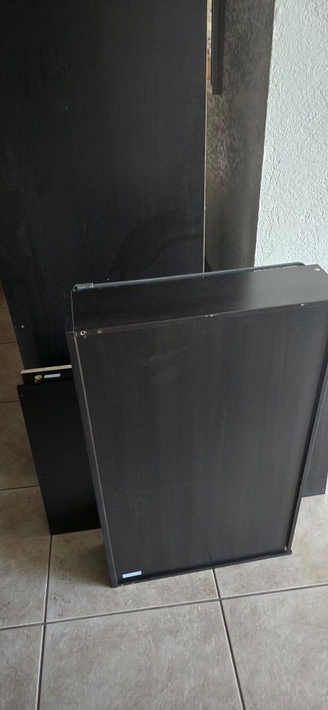 1 x single cabinet 1 x double cabinet Everything is here except the back to the double door unit. But easily replaced with board from Home depot Must take everything. Drawers, shelves, hang bar, pants hangers, etc all here 3 x Glass doors