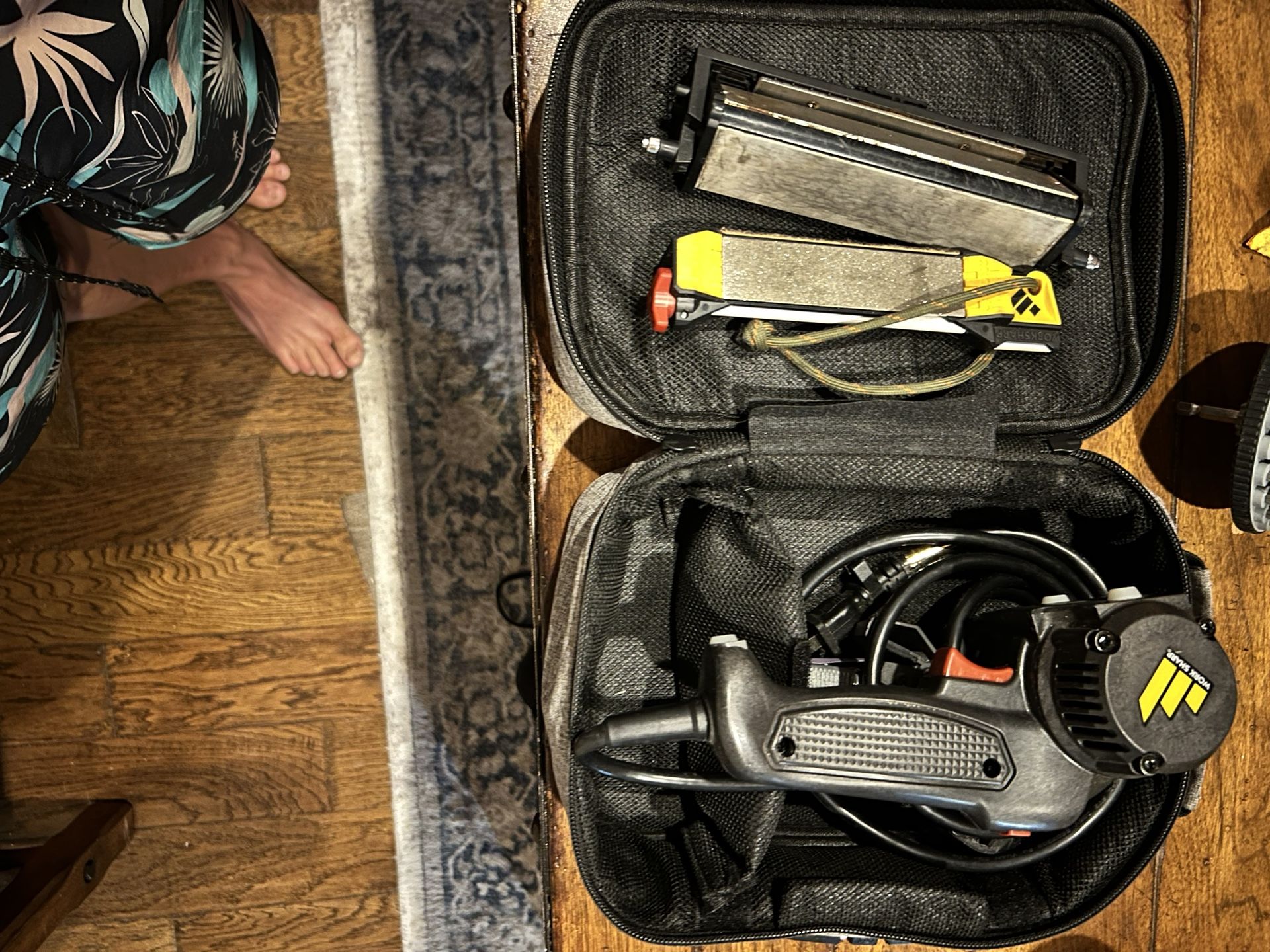 Professional knife, sharpening kit, sharpens any blade cut time down at least 50% comes with five belts of 60 grit five belts to 220 grit and five belts of 320 kit value is $300+ Selling an altogether 150 or best offer