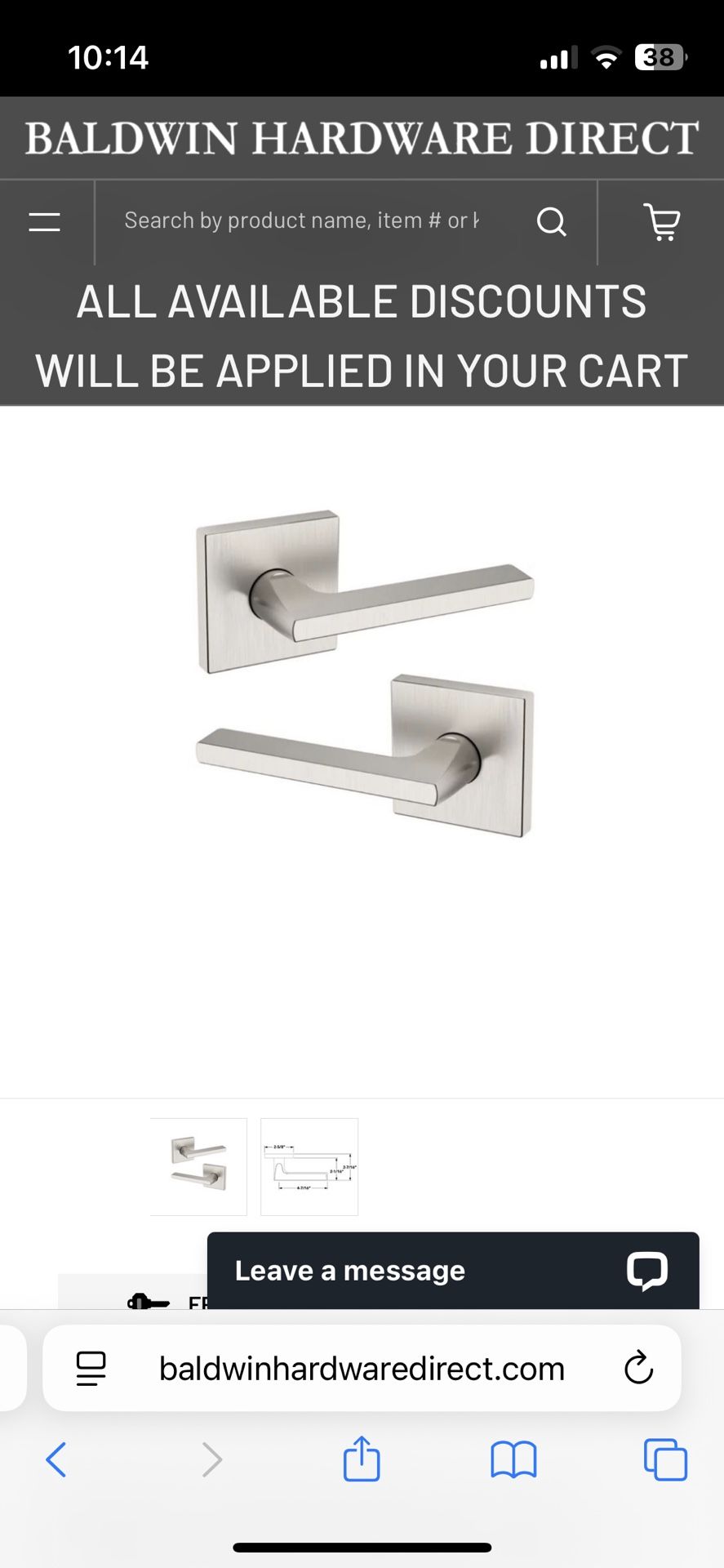 Baldwin Passive door handle in satin nickel. Installed but removed shortly after. All pieces together. Nice handles Item # 5162.056.PASS Have 1 available. $50 per handle. Pickup in Snohomish