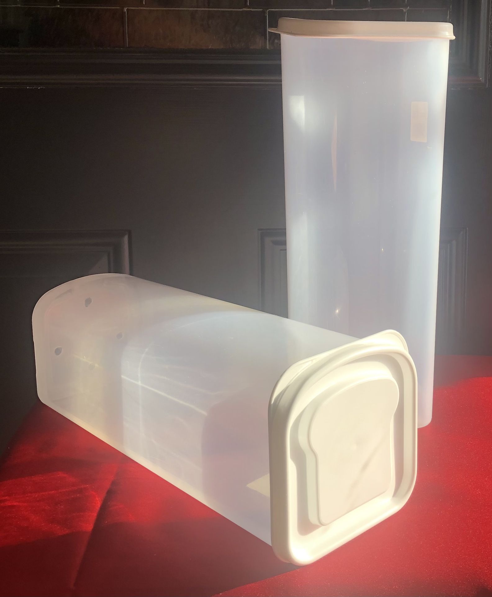 Keep your bread fresh with The World Famous Bread Buddy by keeping the bread in its original bag. allows you to clearly see and read all of the nutriton, variety, and brand information. This bread container Dispenses Slice by Slice meaning after you place the bag of sandwich bread inside the Bread Buddy, simply fold the excess bag or wrapper over the outer edge. Pull down on the outside part of the bag to raise the bread loaf inside, one slice at a time. The Bread Buddy stands up on its end to allow space-saving storage of your fresh sandwich bread making it perfect for the kitchen counter or fridge top, completely out of the way. It also has a rigit design and BPA-free plastic to protect the sandwich bread from ever getting squished again. Made in the USA product. NOTE: Price is for both items being sold together. Each Bread Buddy plastic box measures approximately: 4.5” x 4 .5” x 13 5/8” Conditions: Clean. Very good used conditions. No cracks, dents, broken or missing parts. As used items there may be some light scuffs due to use which not affects its functionality neither will cause it to break or crack. CROSS-POSTED Clean, smoke free home No deliveries First come, first serve No holds without non refundable confirmed deposit or full payment Location: Furneaux Ln. & Frankford Rd. Carrollton TX 75007 Cash, Cash App, Venmo and PayPal All sales are final! Thanks for looking at today’s item!💕