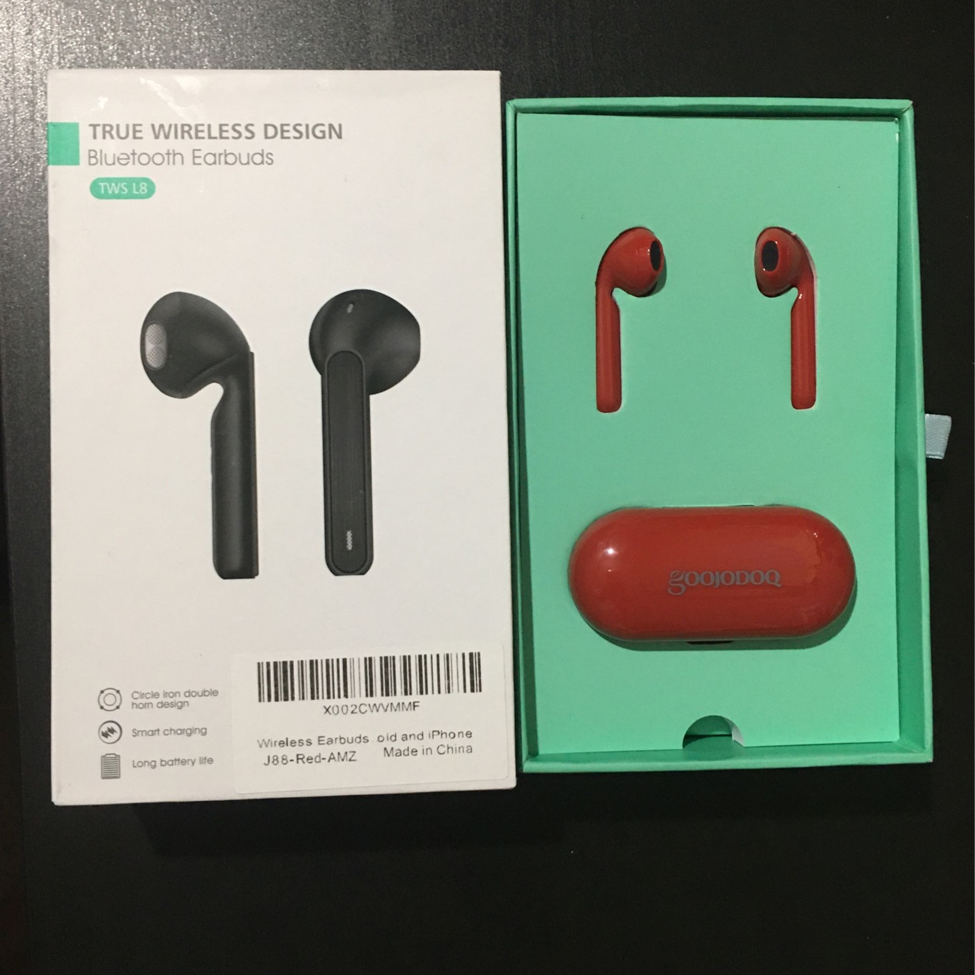Wireless 5.0 Earbuds, with Smart Touch, Dual-Mic, Auto-Pair, 3D Stereo, Sweatproof Mini Sports Earbuds Compatible with Hi-Fi Sound (Red)