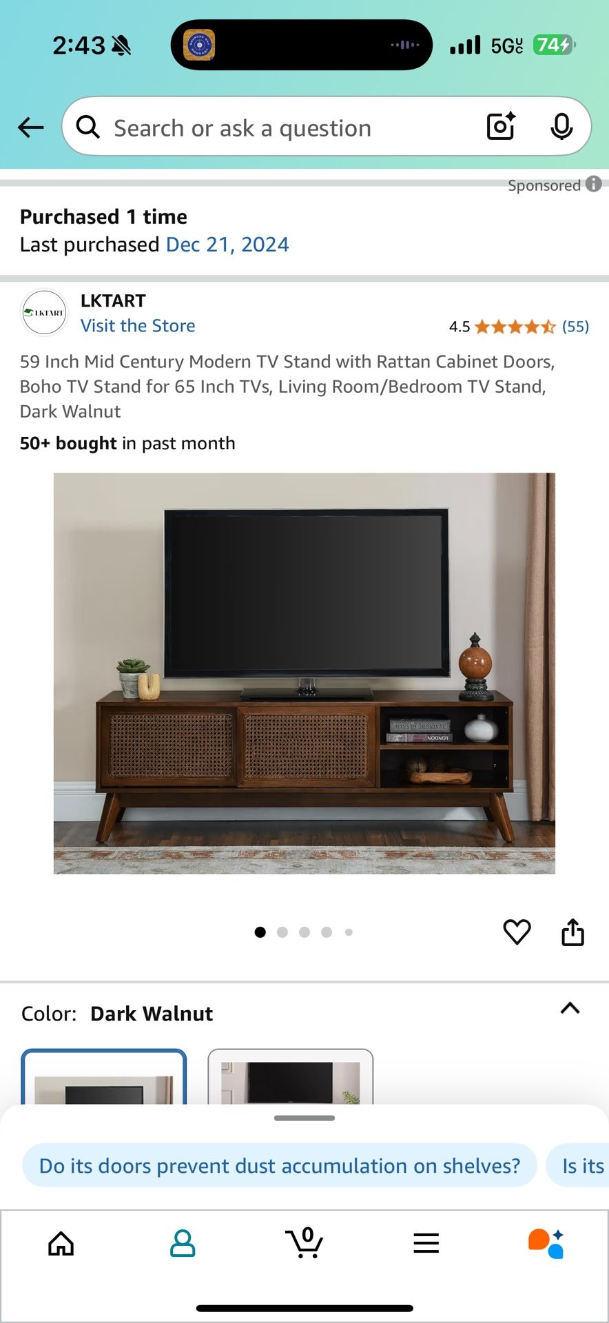 Barely used. Purchased off of Amazon. Has some cool Rattan doors that slide to cover items that you store inside of the console. Dimensions available in photos. Let me know if you have any questions!