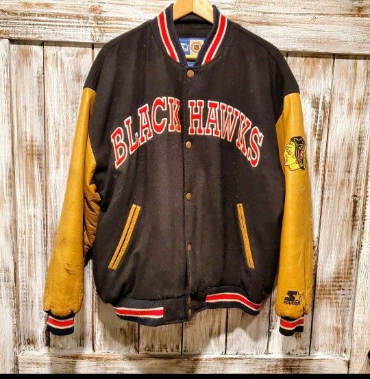 Vintage Starter Chicago Blackhawks Bomber Jacket! (Wool/Leather) Size L