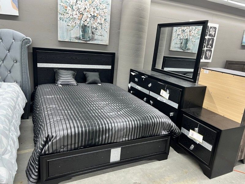 🆕 🌳$10 Down Payment Finance 🌷Miranda Black 4 Piece Queen Bedroom Set