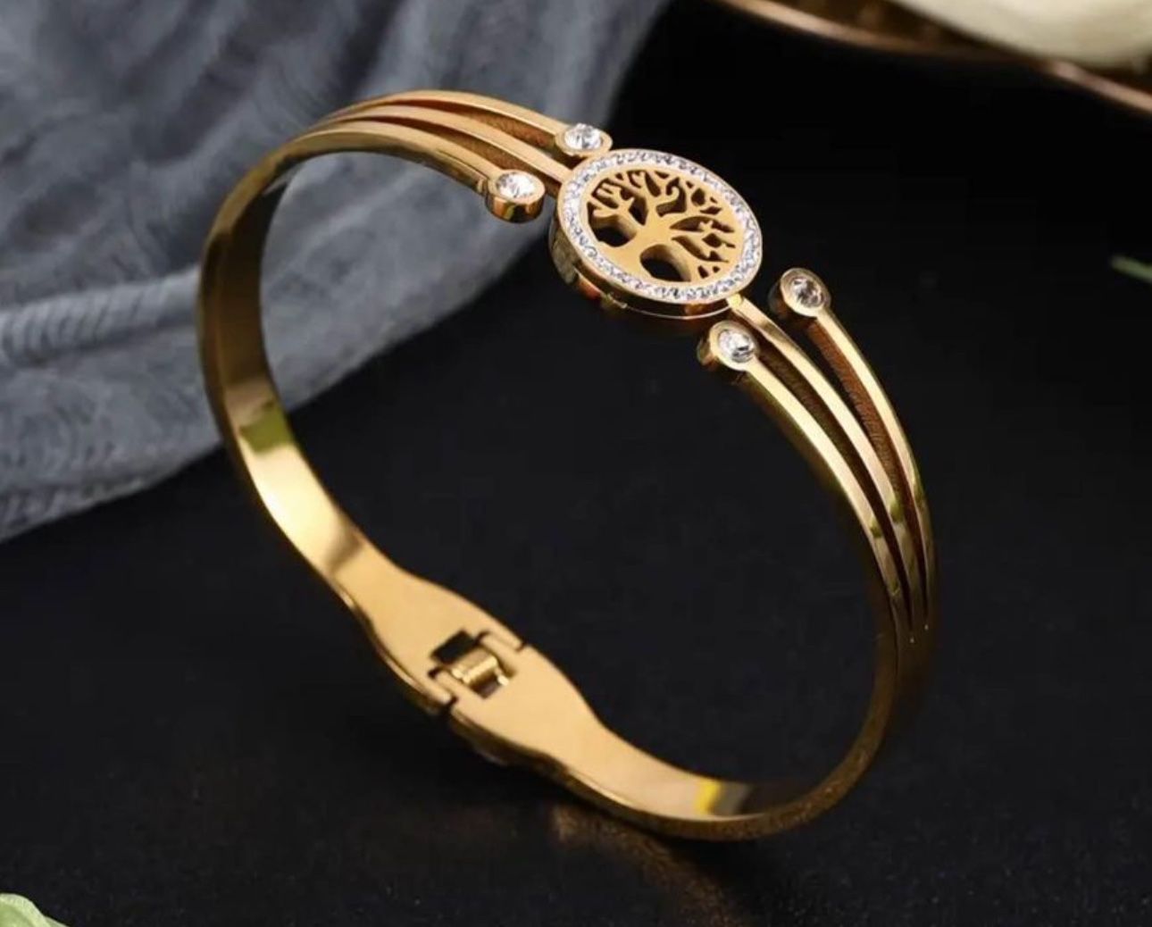 Bracelet Bangle With Tree Of Life Zircon Design 18 k gold plated Stainless Steel Waterproof