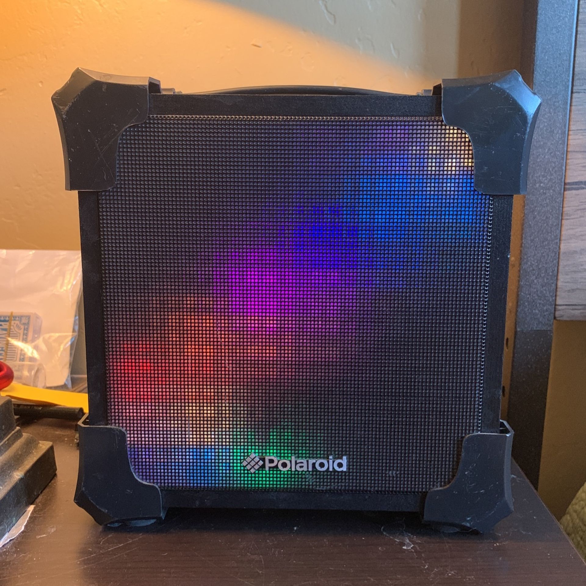Slightly used polaroid speaker, lights work, pairing works, audio sounds smooth. I will let you test it when you pick it up before final purchase :)