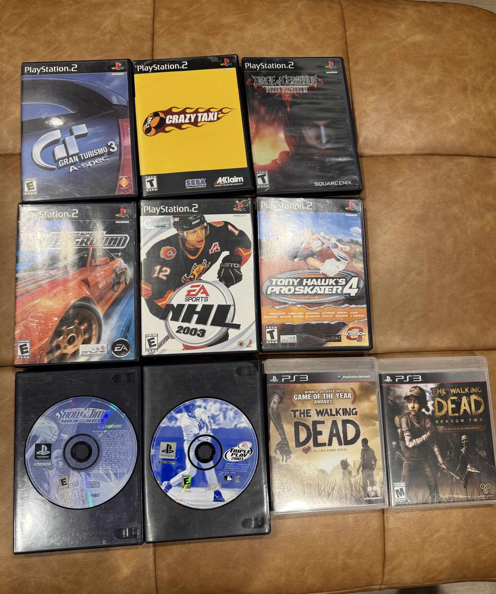 PlayStation Games LOT All games are used All games work and have been tested Lot includes: PS1 NBA showtime NBA on NBC-loose disc Triple Play 2001- loose disc PS2 Tony Hawk’s Proskater 4-complete NHL 2003- complete Dirge of Cerberus-Final Fantasy VII- complete Crazy Taxi-complete Gran Turismo 3 A-spec- complete Need for Speed Underground- missing booklet PS3 Telltale The Walking Dead Season 1- missing booklet Telltale The Walking Dead Season 2- missing booklet