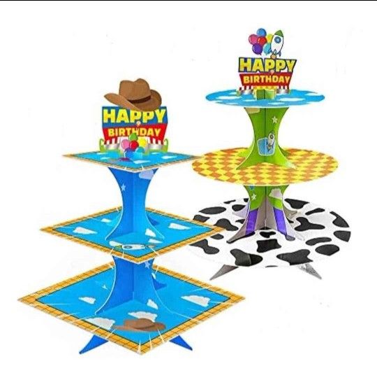 3-Tier Cartoon Toy Story Cupcake Stand 2 Sets Cardboard Cake Stand Dessert Tower Holder for Toy Story Theme. $20 set✅️✅️✅️ New Bell Gardens Toy Story Party Supplies.