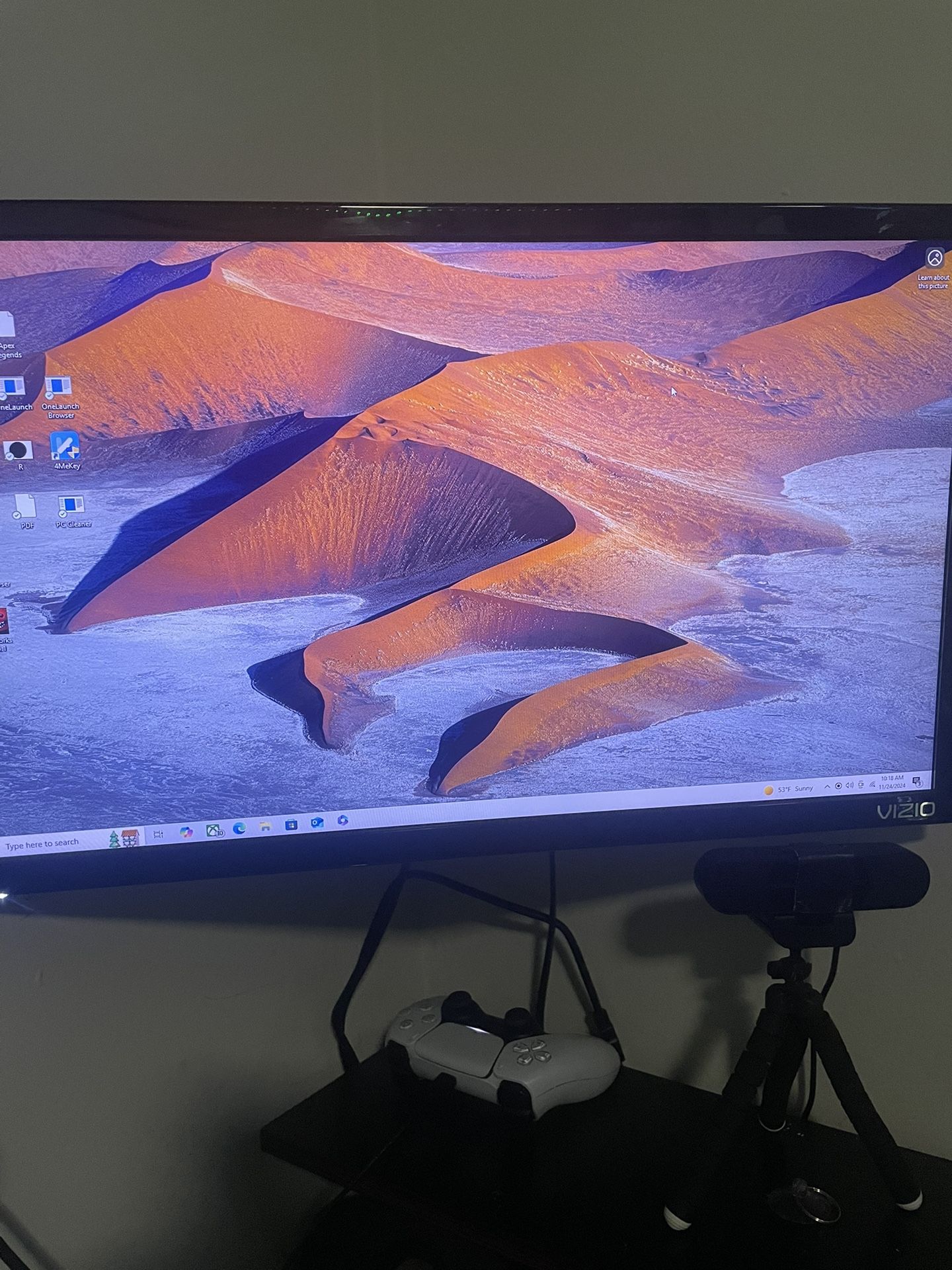 2 monitors Ps5 with controllers and cords Ps portable Steam deck Audio streaming mixer Streaming mic