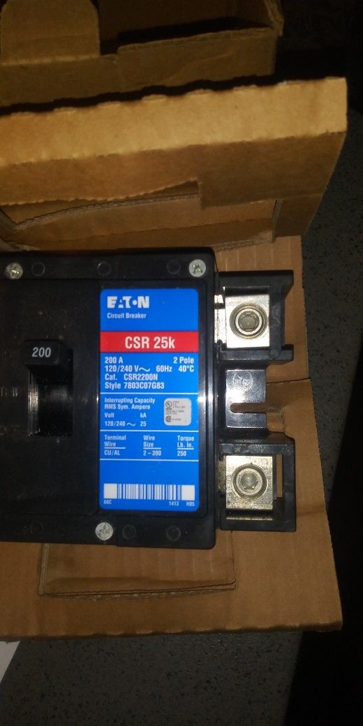 NEW NEVER USED EATON 200 AMP BREAKER, 2-POLE, 120/240! $95 OBO
