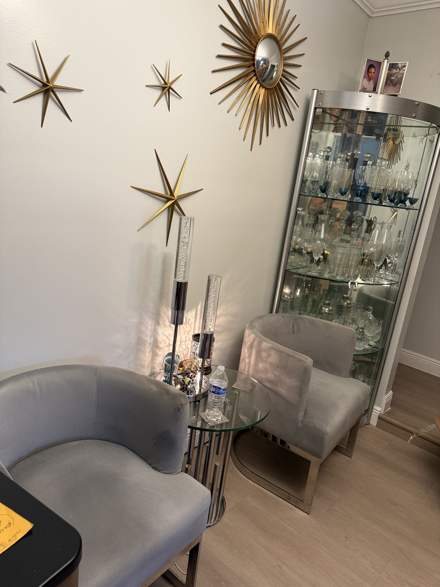 2 silver arm chairs