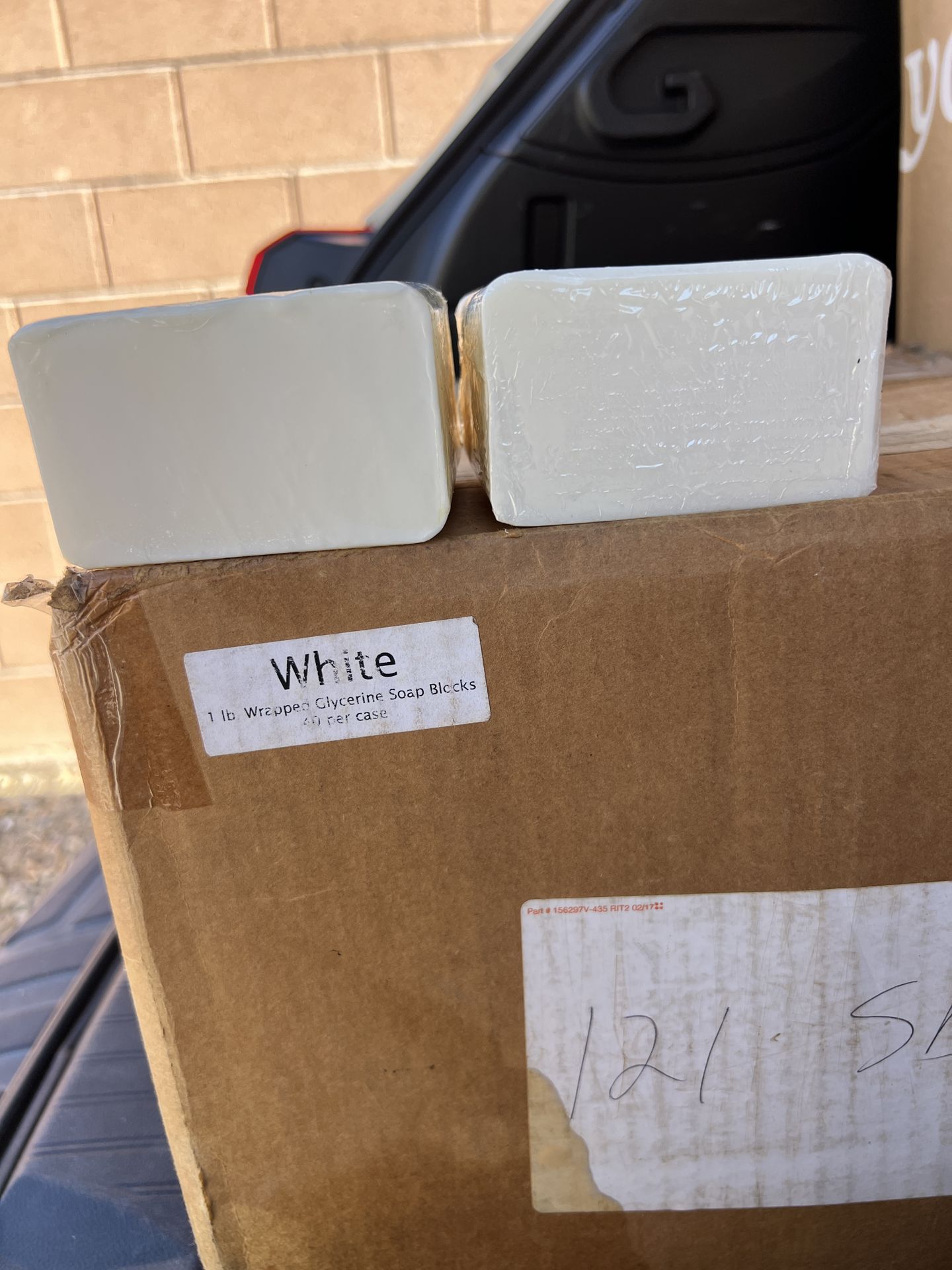 Currently have 3 boxes of 40, 1 lb. each, glycerin soap blocks $5 per lb Willing to negotiate for large quantities