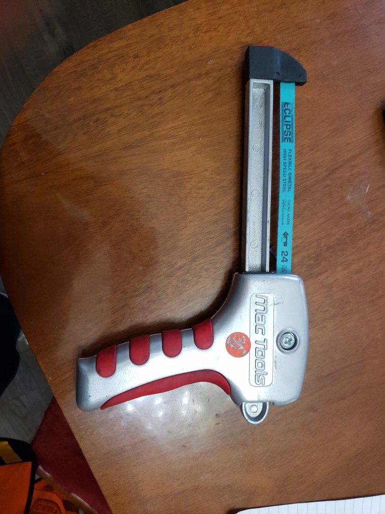 Spring-loaded hacksaw Check out pictures please do not ask if it is available it will say sold when it is not first come first serve no-holds No shipping