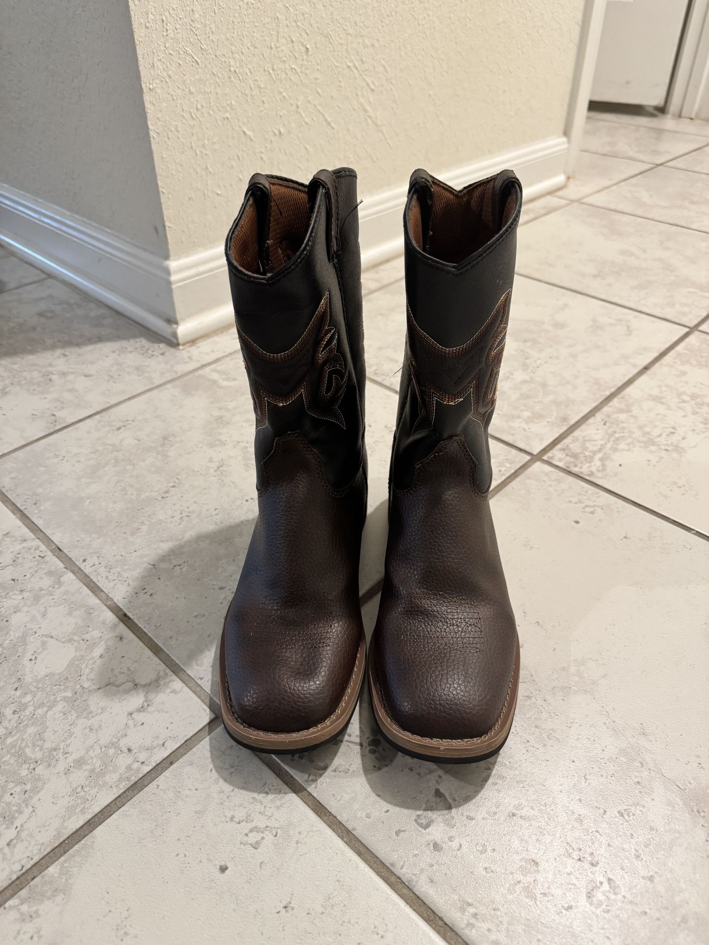 He can stylize his look with the Magellan Outdoors Boys' Ace II Western Boots. These boots are crafted from man-made materials with Western embroidery on the shafts. Rubber and EVA outsoles provide comfort and durability. EVA footbeds. Pull on.