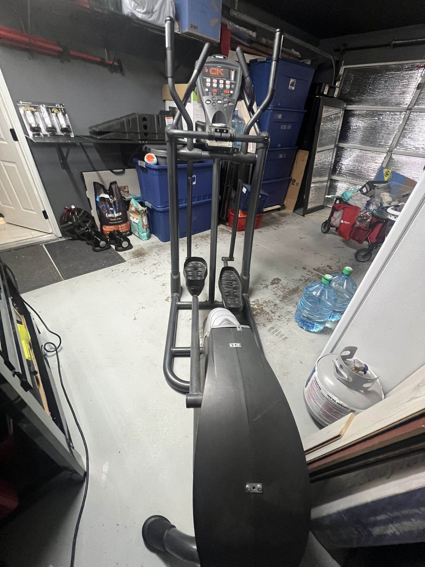 Elliptical Gym, trying to take back space from my garage. Works as it should. Come and try it. Elíptica, estoy tratando de recuperar espacio de mi garaje. Trabaja como se supone. Ven y pruébala.