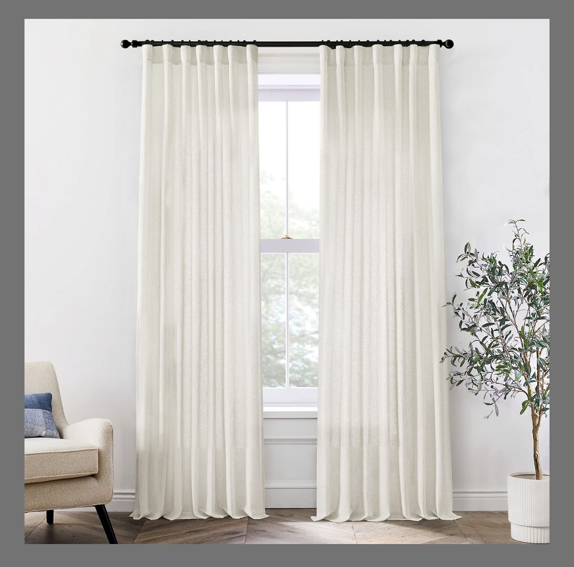 ***original price $40*** 108 Inch Linen Curtains 2 Panels,With Heading Tape Hooks For Track System Back Tab,Stone Washed Cotton Flax Weave Sheer Extra Long Curtain For Living Room Bedroom,9FT 9 FT,Cream(Ivory/Off White)
