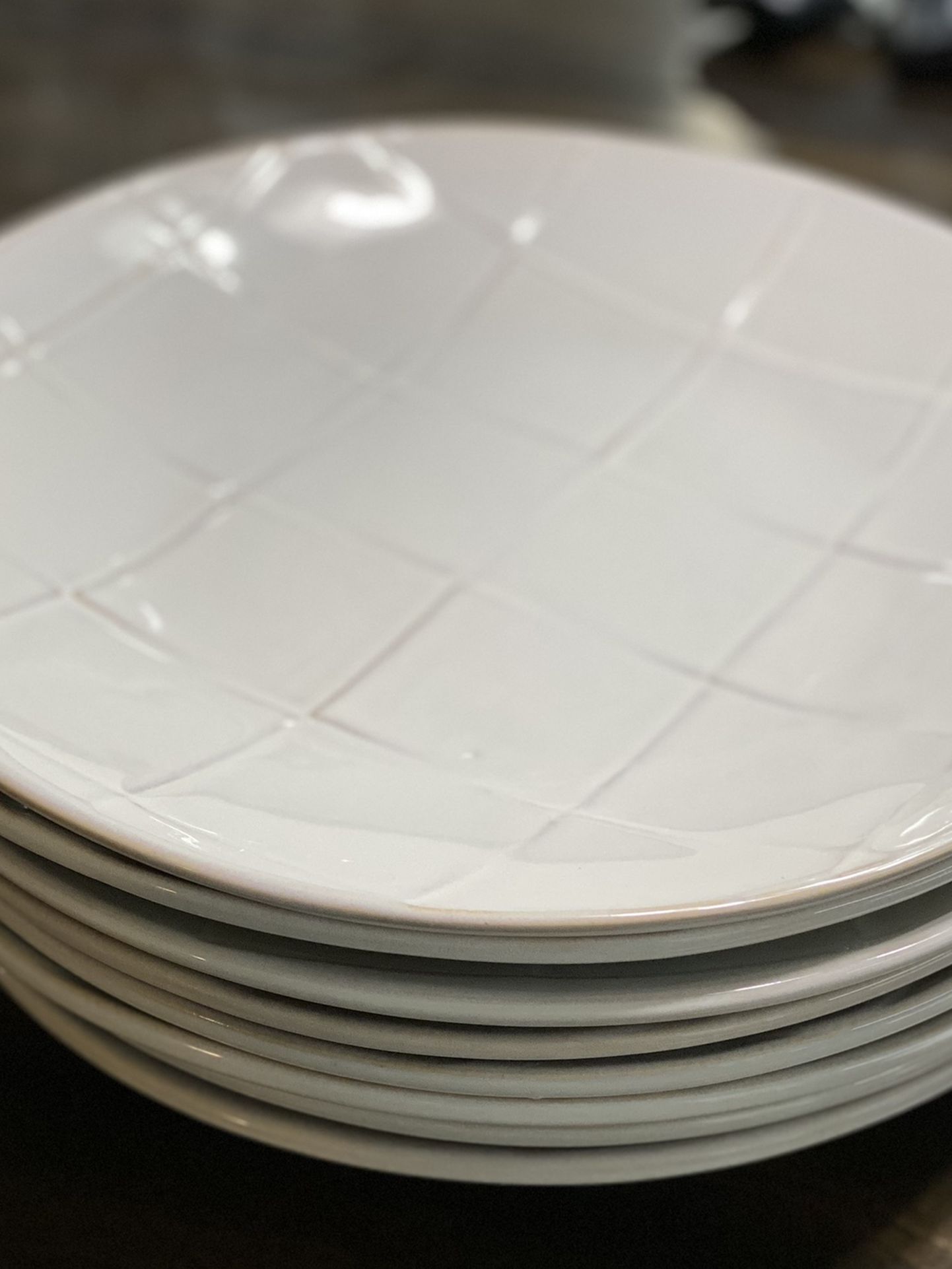Dining Plates PIER 1 Set Of 8. White With Pattern