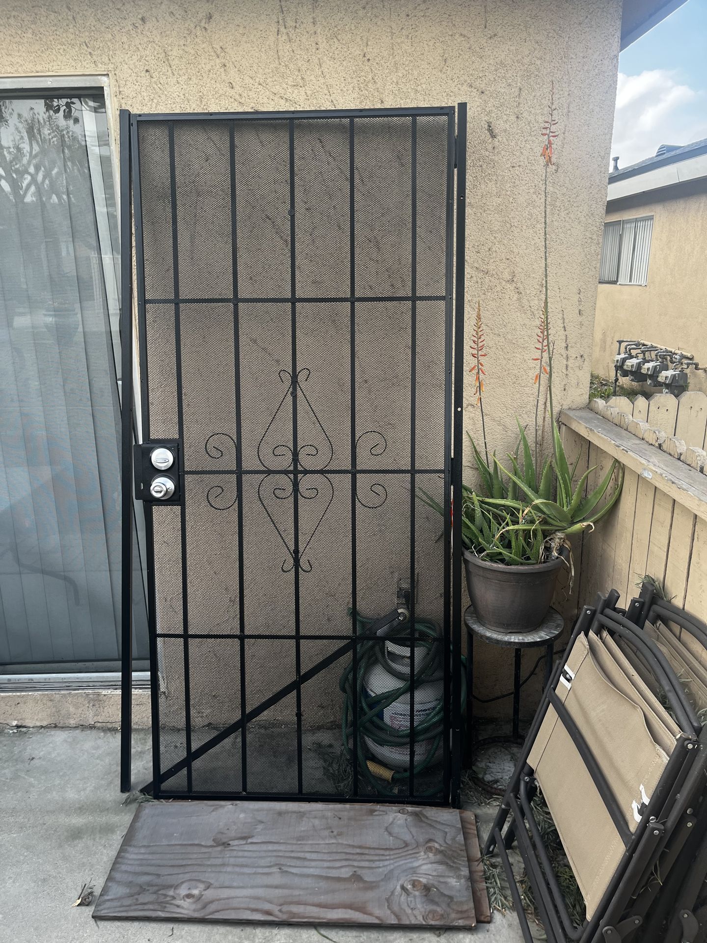 Security door. Used for about a month. Comes with door know and pair of keys. Great condition. Pick up only. Located in Chino. Prefer Zelle