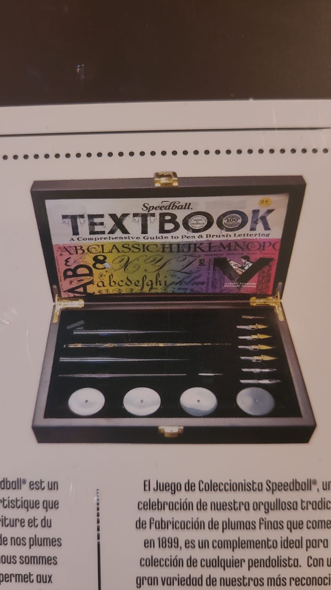 Speedball Calligraphy Collector's Set - Brand new Price: $40 (original price: $70) Condition: Brand new, still in wrapper Description: Collector's set of 17 pieces, including 3 pen nib holders, 1 quill pen holder, 4 pen nibs (C-2, C-3, A-5, B-6), 4 flexible pen point pen nib, 3 jars of super pigmented acrylic ink, a booklet, and a carrying case.
