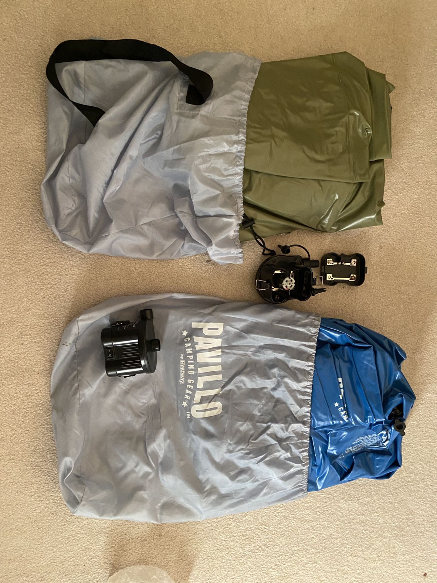 This item was only used once and is in good condition. No leaks and no issues. Please bring 4, D size batteries if you wish to test a pump. Original carry bag included.  Great for camping or as an emergency guest bed.