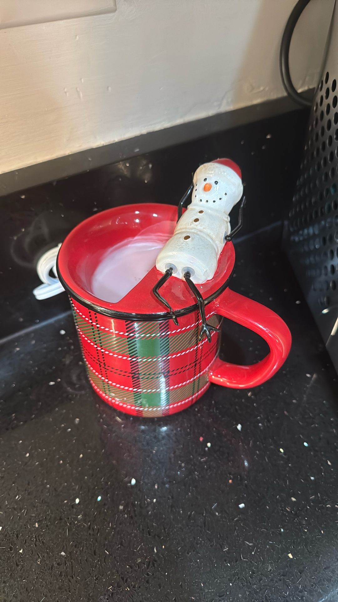 Elevate your holiday ambiance with the Scentsy Melt My Heart Snowman on Plaid Mug Christmas Element Wax Warmer. A charming addition to any room, this classic red warmer features delightful embellishments of a snowman melting into a festive plaid mug, capturing the spirit of the season. Wax melts are not included.