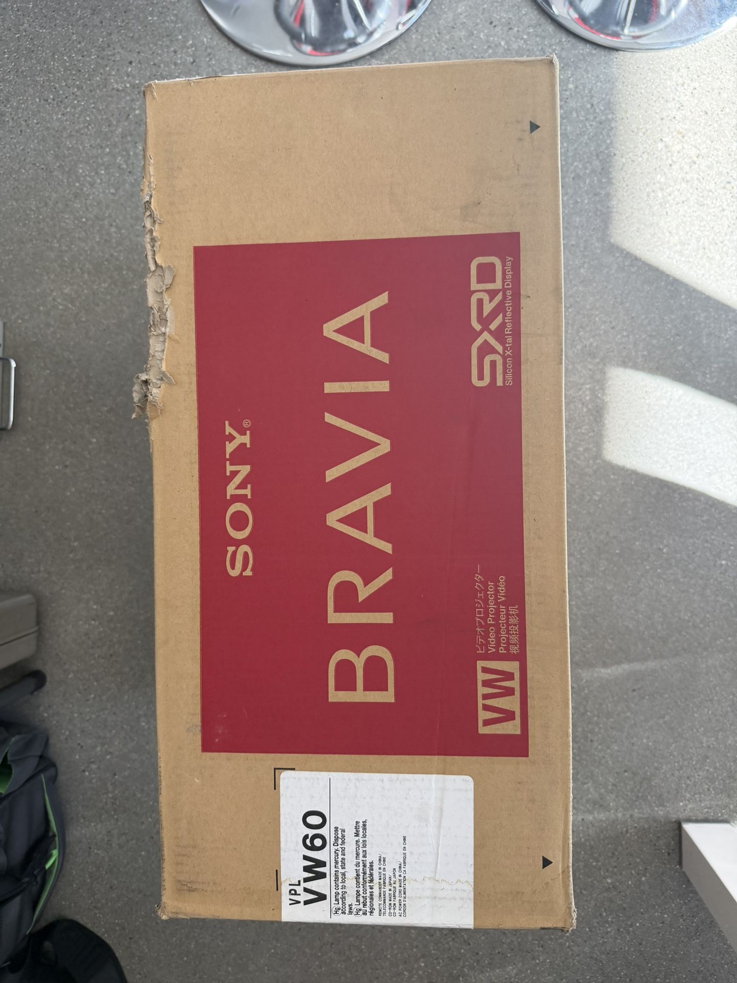 High-end Sony projector featuring SXRD (Silicon X-tal Reflective Display) technology for excellent contrast and cinematic image quality. Designed for dedicated home theater use. Includes projector and original Sony box as shown. Box shows cosmetic wear from storage and handling. Projector appears well cared for; see photos for condition. Model: VPL-VW60 Made in Japan