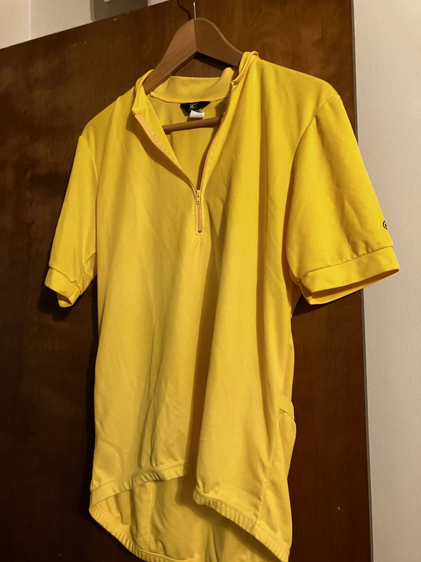 Bright yellow Canari biking shirt, was a gift quite a few years ago, but never worn. Excellent condition 100%poly with 3 pockets in the back. Size L Cash only