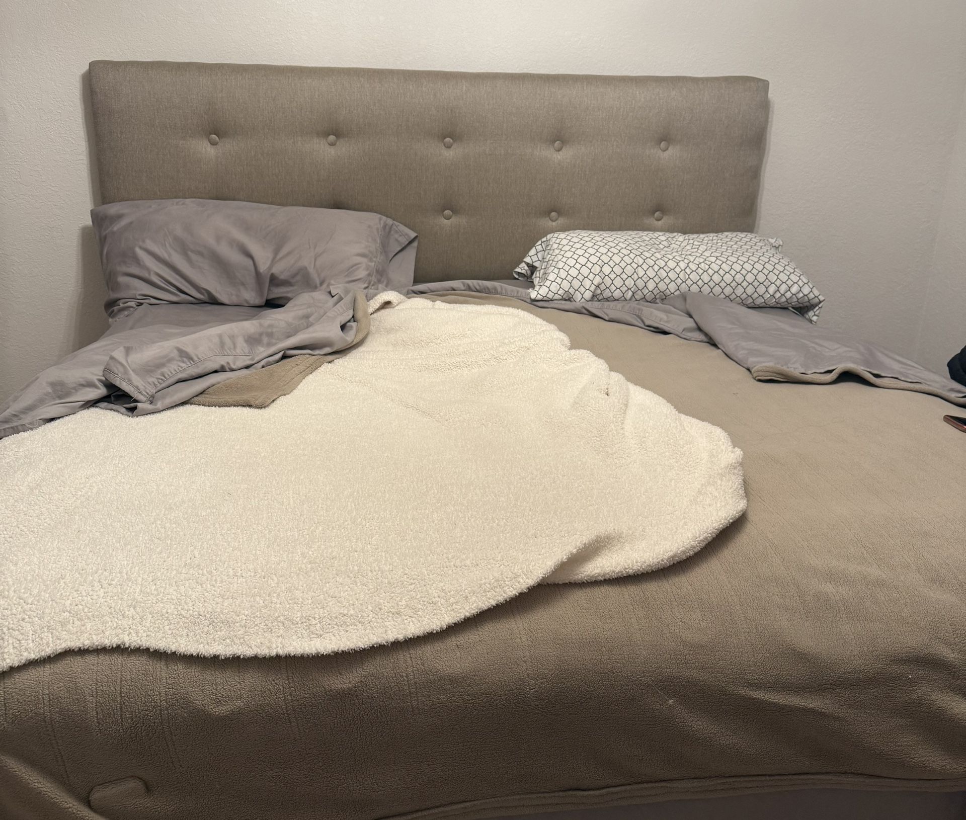 Twill cover tucked headboard with sealy posterpedic mattress like new.