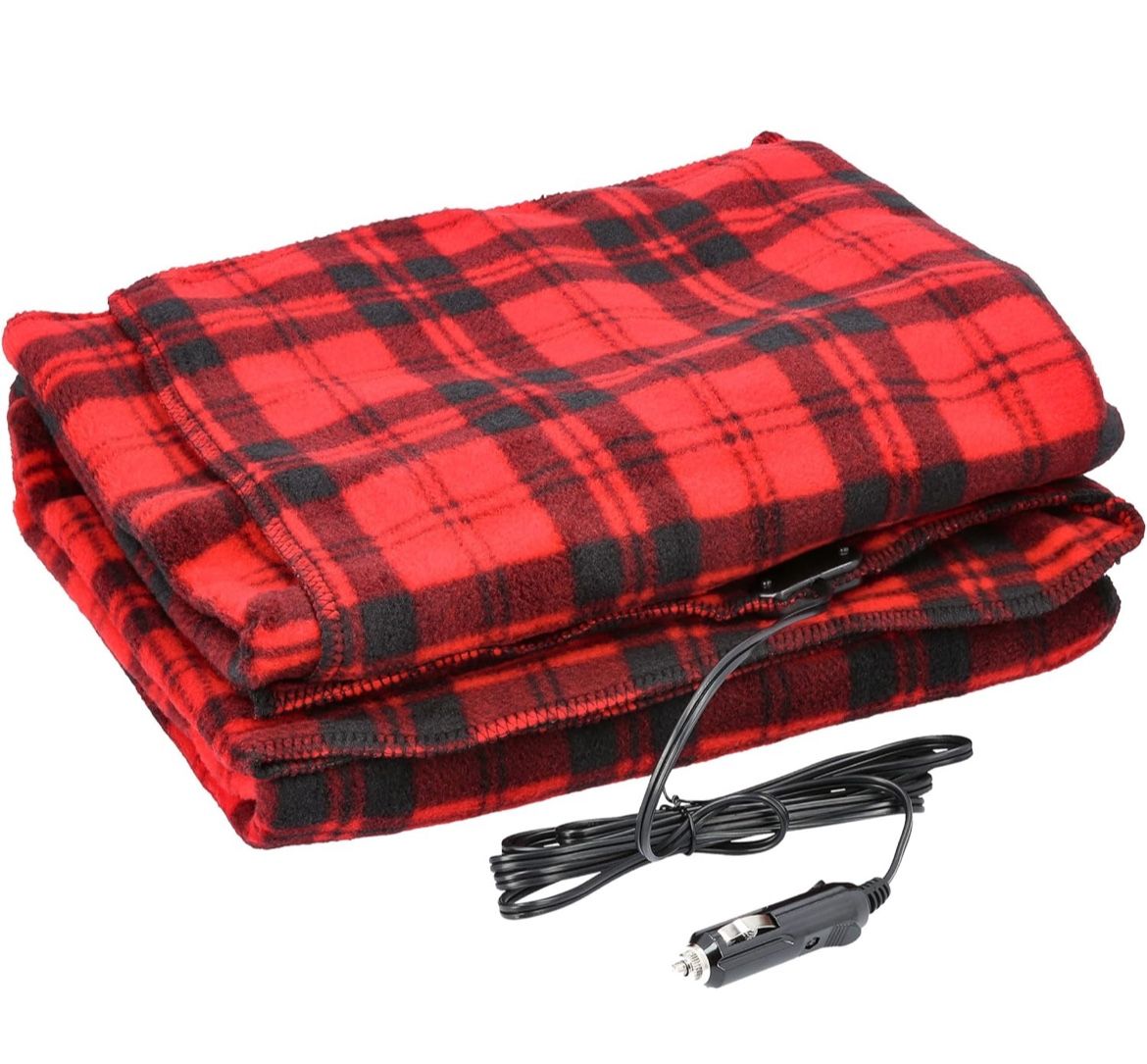 Heated Car Blanket - 12-Volt Electric Blanket for Car, Truck, SUV, or RV - Portable Heated Throw - Camping Essentials by Stalwart (Black Plaid)