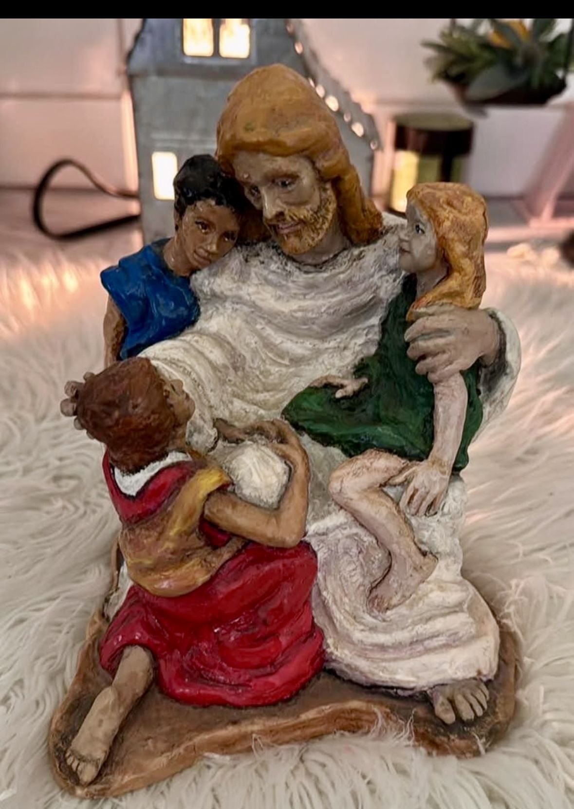 Vintage 1984 Abbey Press "Let the Children Come to Me" Heavy Resin Figure with Jesus and the children 7” tall Very pretty Smoke free home