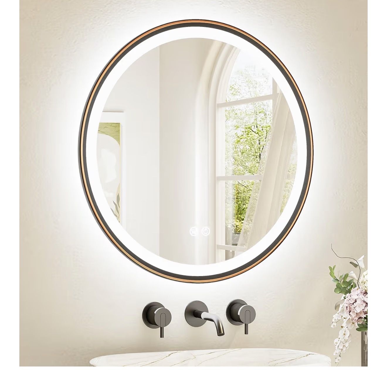 Brand new in box 59th ave Thomas Round Led Oil Rubbed Bronze Bathroom Mirror 24 Inch Circle Round Lighted Vanity Mirror with Lights for Bathroom Wall, 3 Color Stepless Dimmable, Anti Fog, Shatterproof, CRI 90+