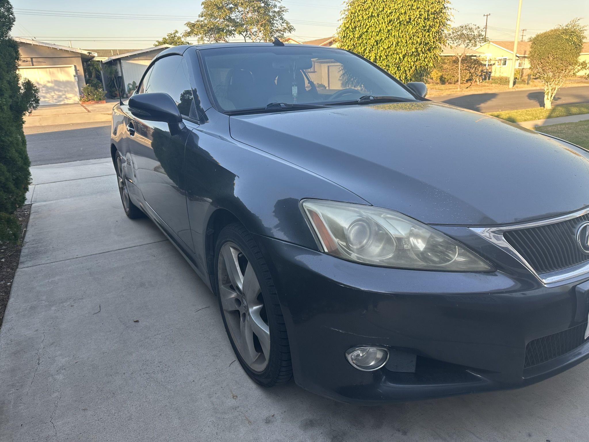 Hi. I’m selling my 2010 Lexus is250 c hardtop convertible. Car in is good running condition. Everything still in good function order. Automatic top works. power windows ac power steering all working condition Cooling and heating seats works. Mechanically car is good. The body was banged up a little bit on the drivers side and bumpers. Nothing major. Car has clean title. Just past smog and registration good u til July 2026. Roughly around 170thousand miles . Willing to negotiate on price. The car is worth anywhere from 8 up to 20 thousand if in great condition. With a little body work and fresh paint car would be worth at least 10. Asking 5500 let me know what you can do.