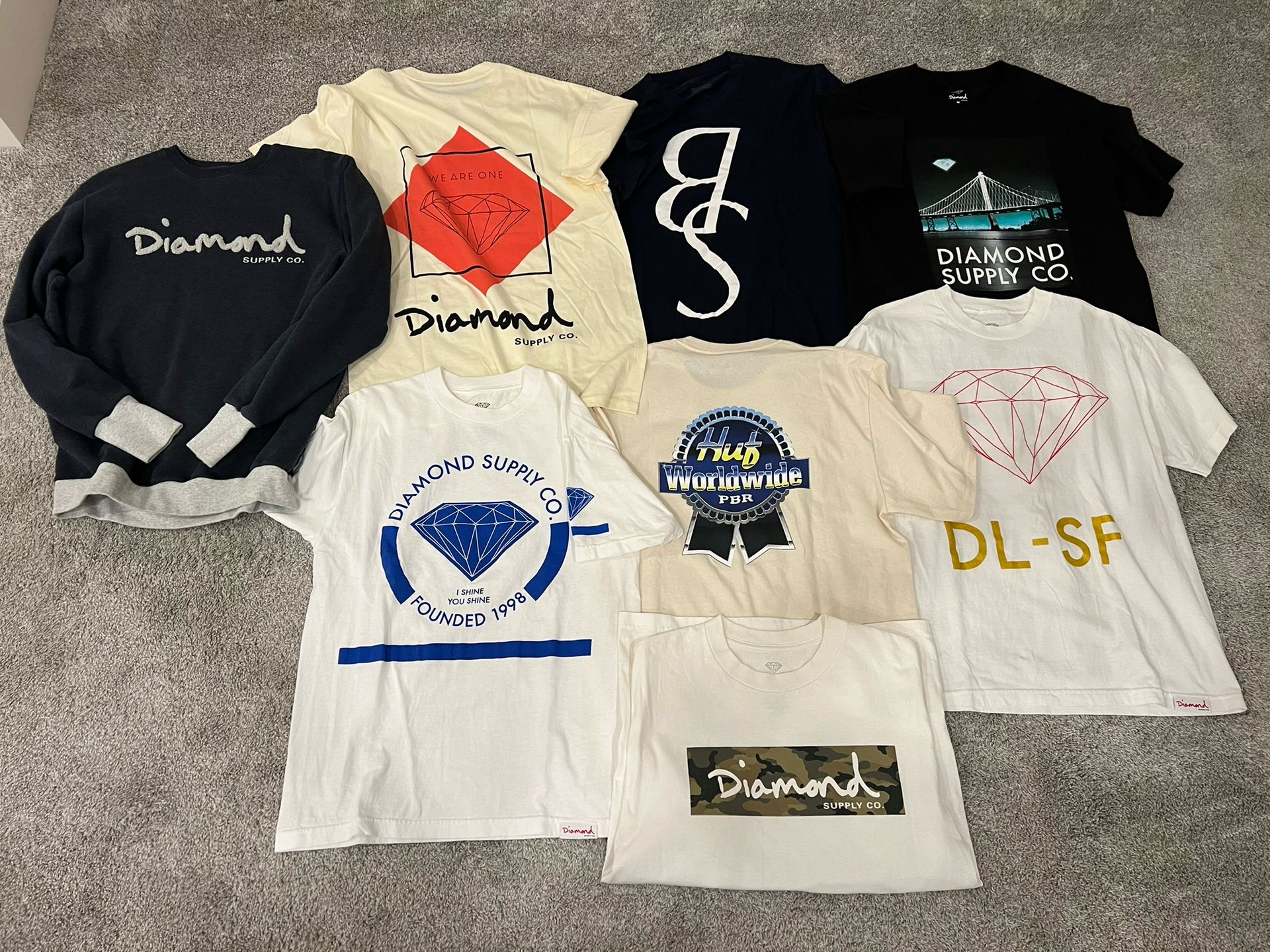 Lot of 8 street wear t-shirts and sweater (Diamond supply, Black scale, Huf) Excellent condition! No stains or fading! All only worn once except the camo diamond shirt (twice)
