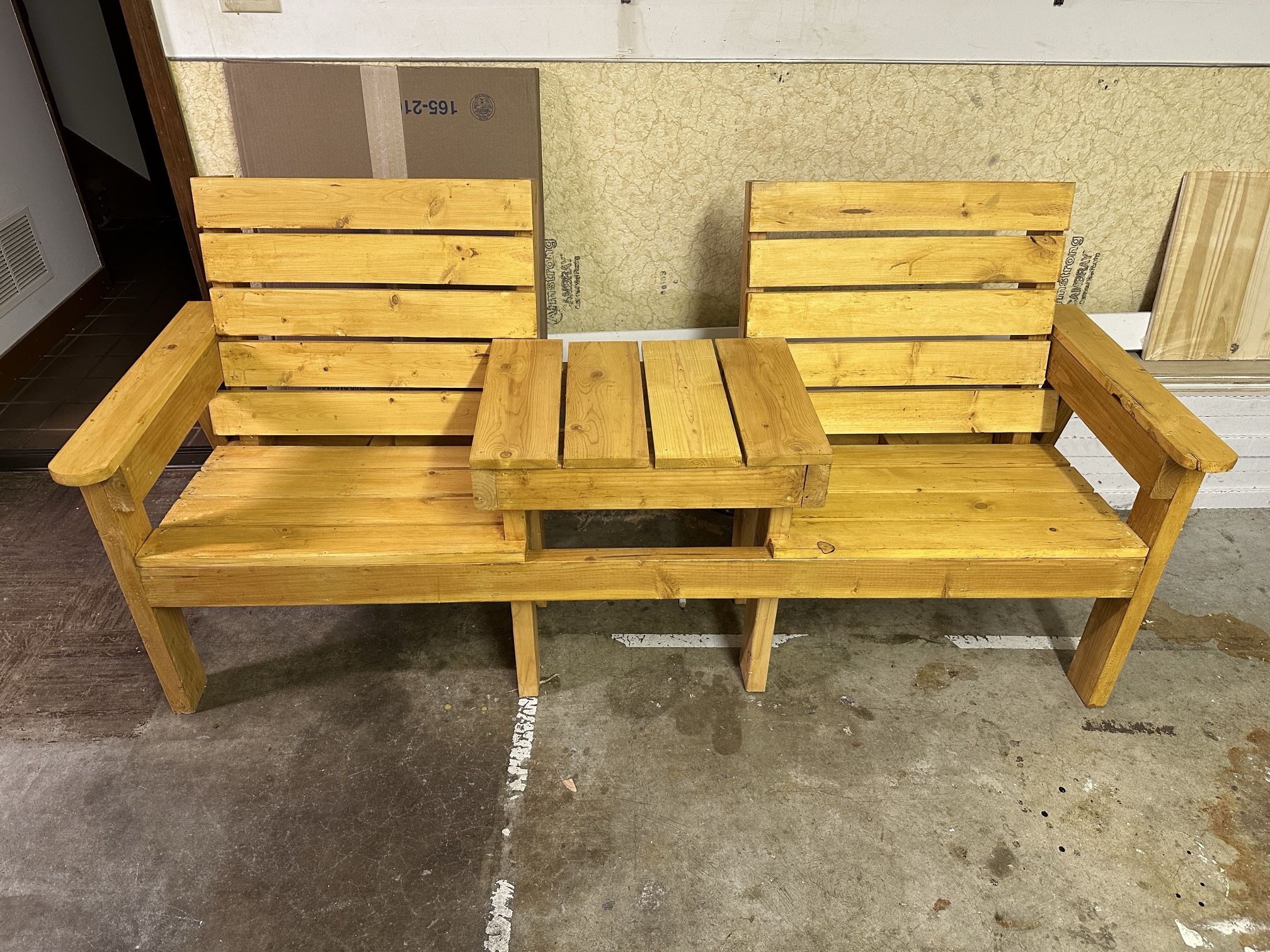 Transparent stain and sealer with All weather protection Whole table measurements 71 3/4 inches length 24 3/4 inches wide 33 7/8 inches tall If want delivery an extra $25 with the price