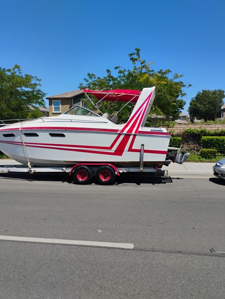 Motor has low hours hasn't been ran in some years needs oil change regular maintenance boat also needs batteries pink slip to trailer and boat As it needs seats redone and someTLC. ....Or Obo