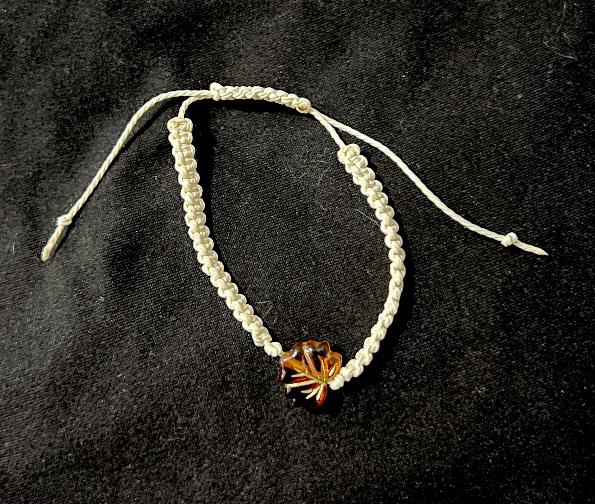 Handmade, beige adjustable bracelet with brown autumn leaf bead