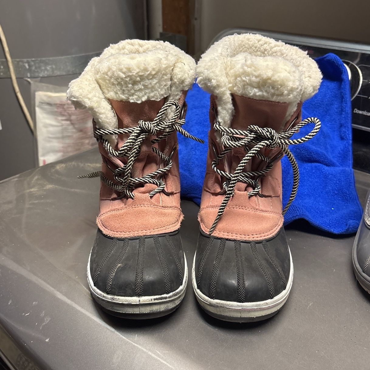 Girls pink and black snow boots. Size 2. Cat and jack. Lace ups. Super warm
