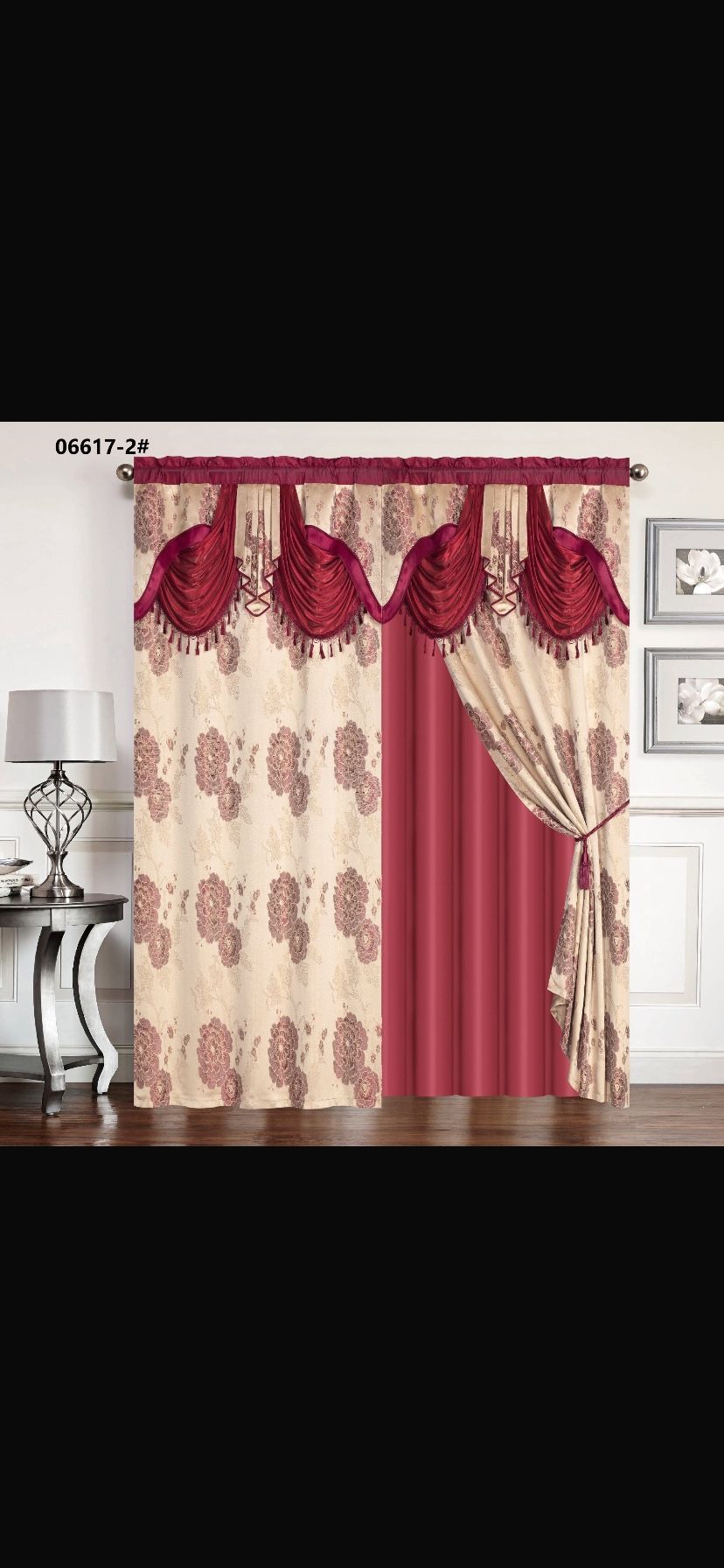 Elegant Red & Cream Window Curtains – New Beautiful luxury window curtains with an elegant red and cream floral design that adds a sophisticated and warm touch to any room. • Size: 53" x 84" • Color: Red and cream with floral pattern • Material: Soft and durable jacquard polyester fabric • Feature: Helps reduce sunlight and provides extra privacy • Design: Decorative layered valance with tassel details and tieback • Condition: Brand new These curtains have a beautiful woven floral pattern that gives them a rich and elegant appearance. Perfect for living rooms, bedrooms, or dining areas to create a cozy and stylish atmosphere. Easy to install and fits most standard curtain rods. Pickup available in New Jersey. Message me if interested.