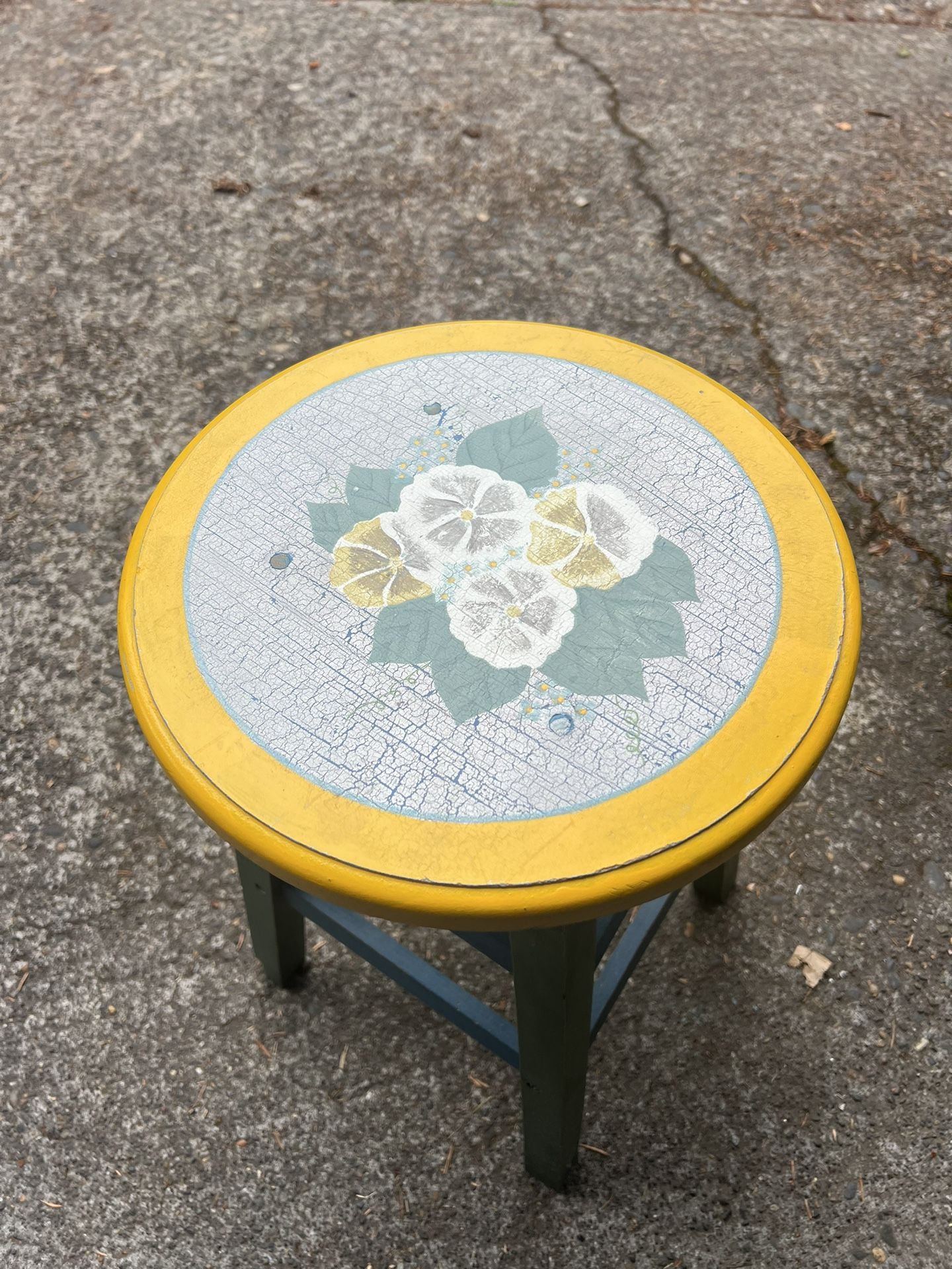 One of a kind decorating stool, which can also be used as an accent piece 17” high