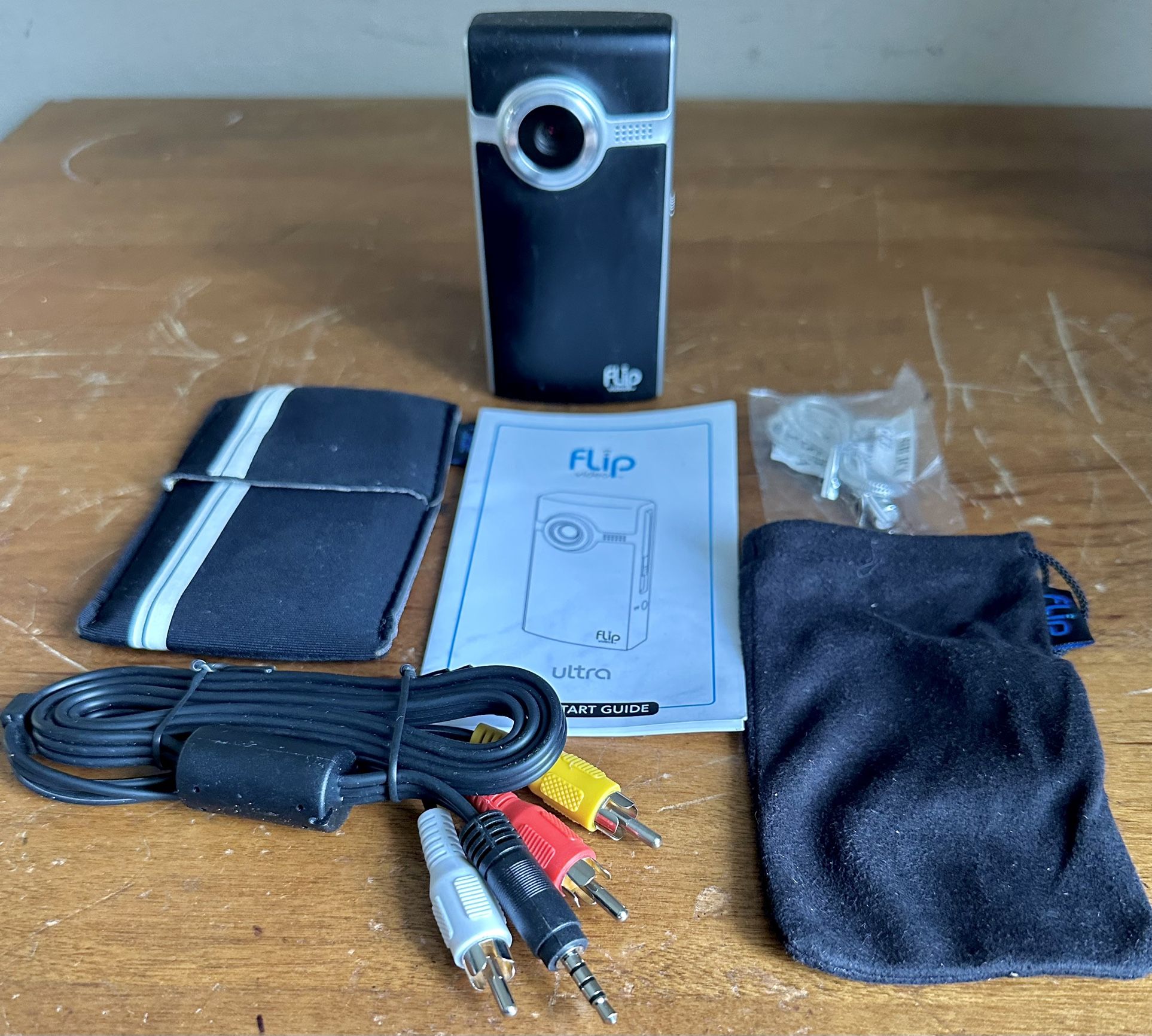 Flip Video Model PSV-552 Pure Digital 60 Minutes Flash Media Pocket Camcorder Pre-owned in great with minimal wear. It comes with camcorder, wrist strap, soft pouch, AV cable & quick start guide. Please refer to the pictures & video. What you see is what you get.