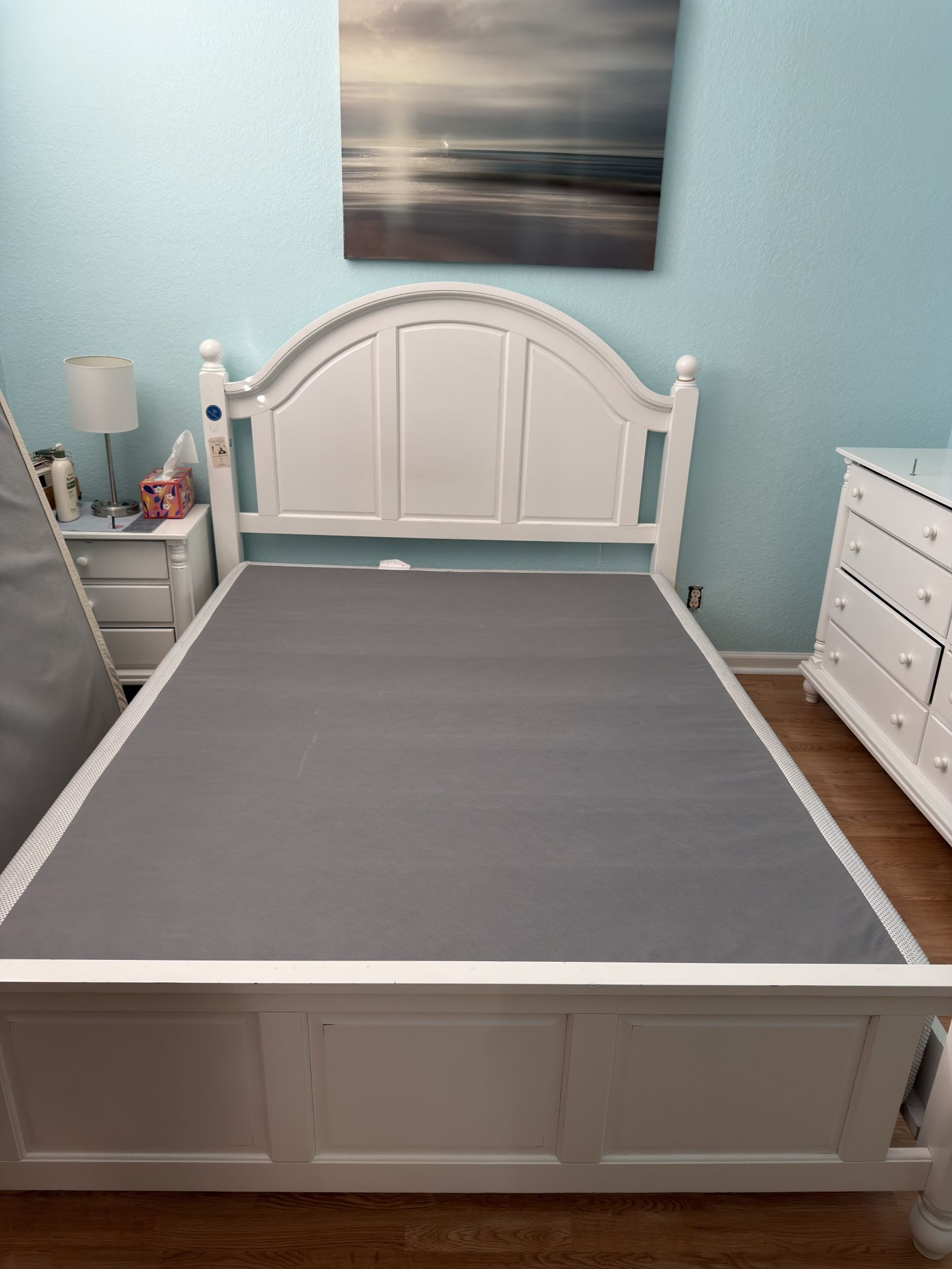 Bed frame , dresser and mirror, 2 night stands , in good condition, including free matters and box spring , COASTER brand , very good quality.