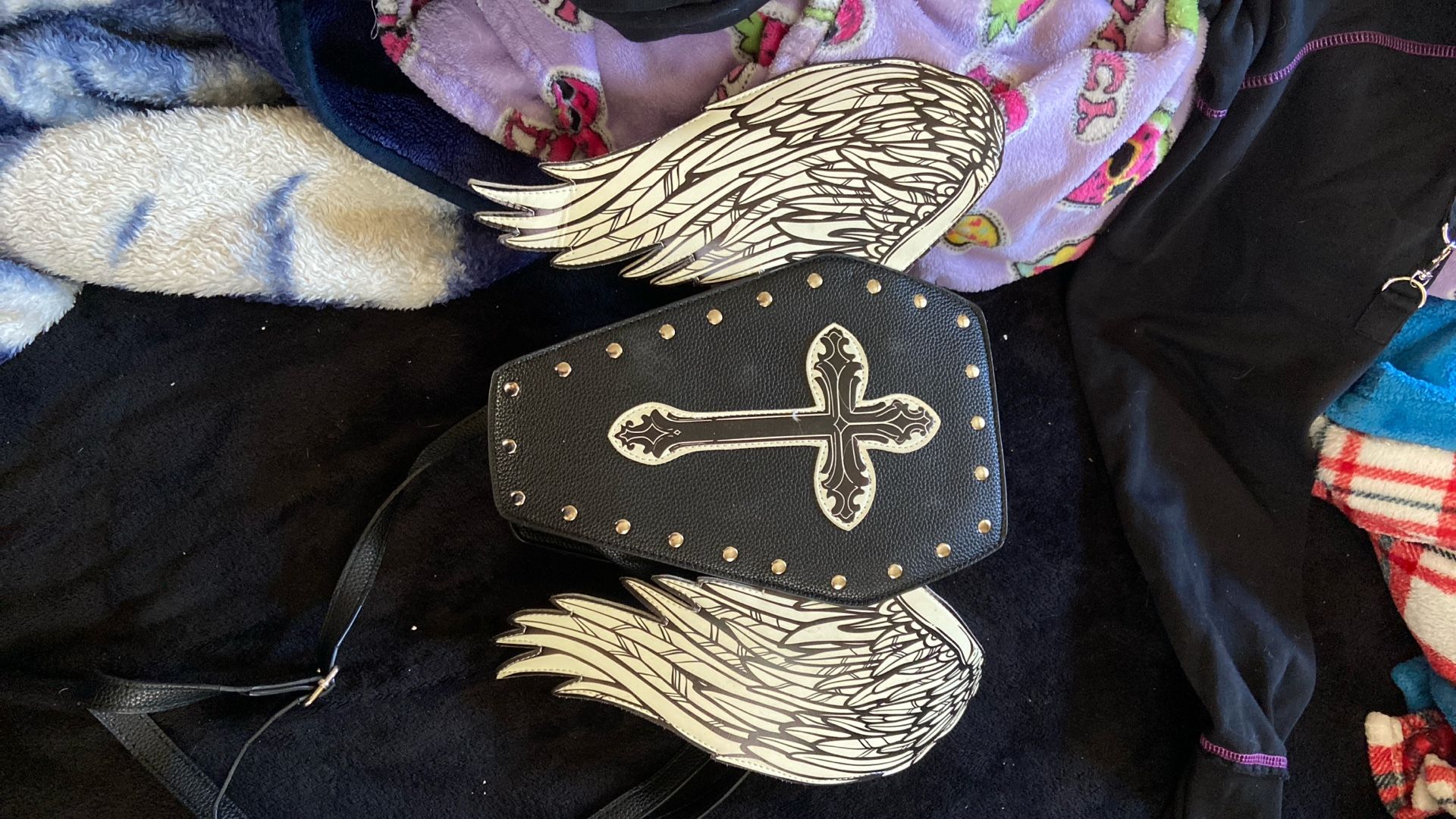 GLOW IN THE DARK Emo Y2k Coffin Cross Purse With Wings