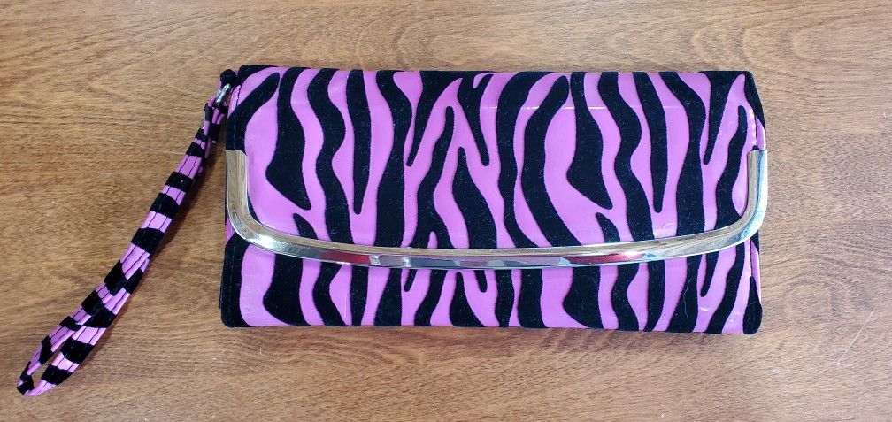 Cute Wallet Wristlet - Pink Zebra Striped