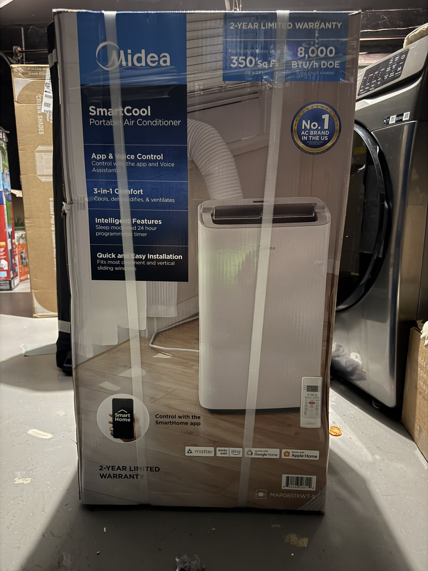 READ DESCRIPTION ⬇️⬇️⬇️ Description: 🔥 BONUS DEAL:🔥🔥 I also have a second unit that is unboxed but unused / brand new condition. Less than HALF PRICED!🚨 If both units are purchased together🔥🔥🔥 Perfect if you need cooling for two rooms or want a backup unit. Stay cool all summer with this Smart Midea 8,000 BTU (10,000 BTU ASHRAE) Portable Air Conditioner. Perfect for apartments, bedrooms, offices, or medium-sized rooms up to 350 sq ft. This unit features 3-in-1 functionality: • Air Conditioner • Fan • Dehumidifier It includes a remote control, programmable 24-hour timer, sleep mode, and 3 fan speeds for customized comfort. The ComfortSense Remote automatically adjusts cooling based on where the remote is located in the room. You can also control it using the SmartHome app, Alexa, or Google Home for remote access and scheduling. 🔧 Specifications: • Model: MAP08S1JWT-B • 8,000 BTU cooling power • Coverage: Up to 350 sq ft • 115V • 1,095 watts • 9.6 amps • 3 speeds / 4 settings • Electronic controls • Automatic shut-off • Automatic coil de-icer • Includes washable filter • Window installation kit included • 6.23 ft power cord • Casters (wheels) for easy room-to-room movement • ETL listed Installation required (window mounted exhaust kit included). Assembly required. ✅ Why You’ll Love It: ✔ Great for small homes & one-bedroom apartments ✔ Easy to move from room to room ✔ Smart app + voice assistant compatible ✔ Energy efficient portable cooling solution Message me if interested! If you want, tell me: • Condition (new, like new, used?) • Asking price • Pickup location