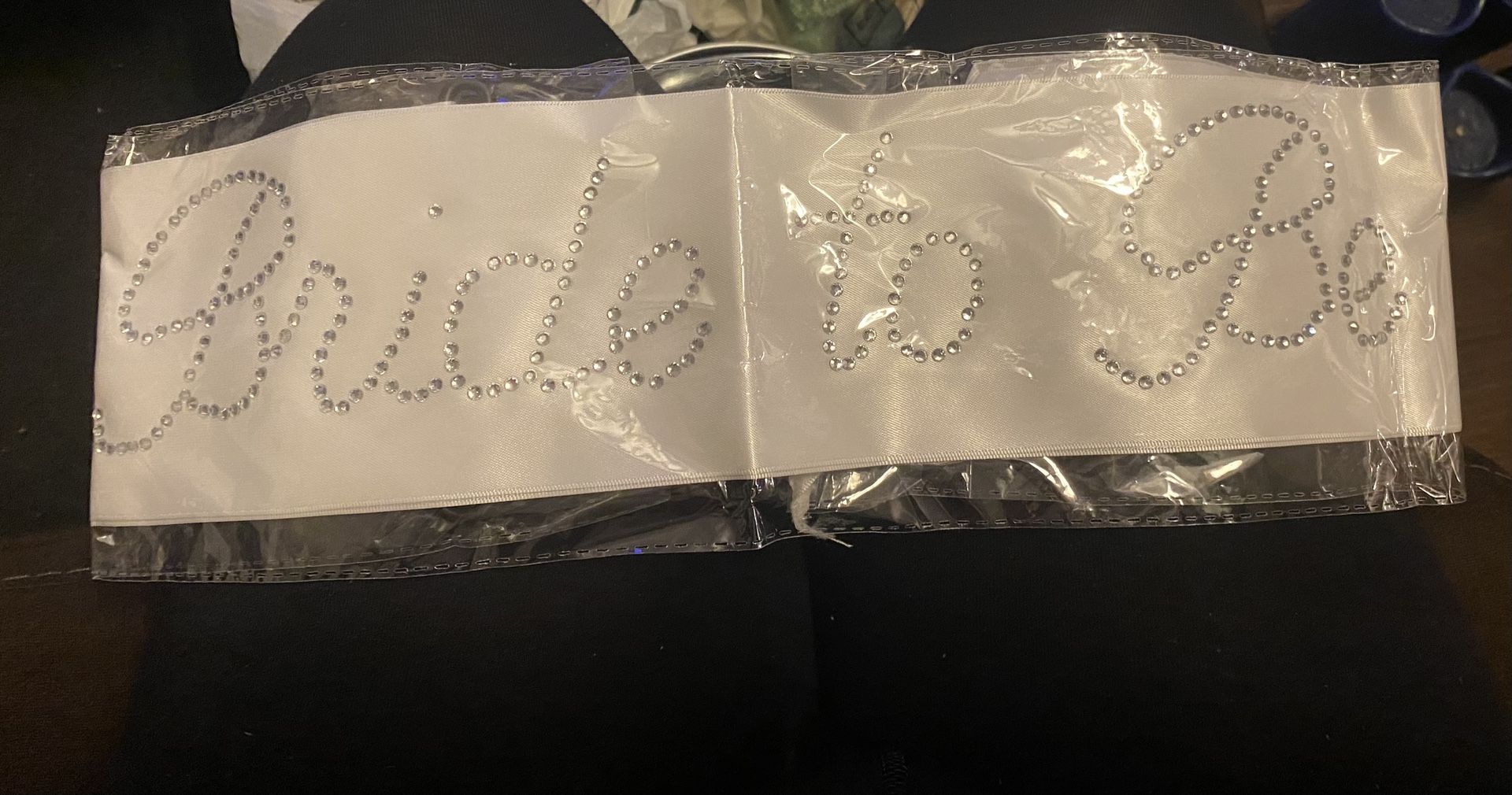 White bride to be sash for shower, bachelorette, wedding events! Never worn or opened!