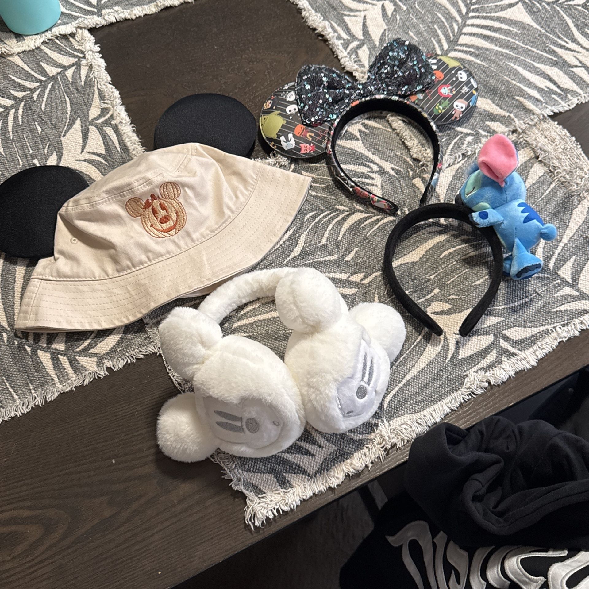 Disney Mickey ears and hats All have only been used 2-3 times, in perfect condition! Mickey pumpkin bucket hat $15 Nightmare before Christmas ears $20 Mickey ear muffs $12 Stitch headband SOLD ❌ Open to offers everything on my page must go!