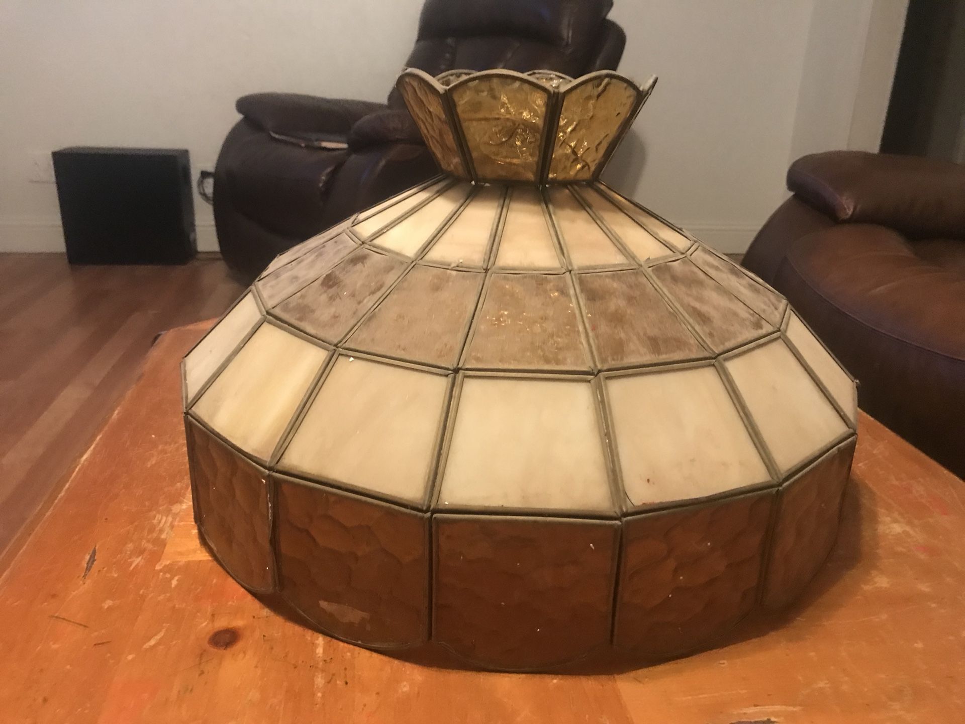 Antique lamp came out of a old home in Roswell New Mexico that was demolished all glass is there with brass framing {contact info removed}