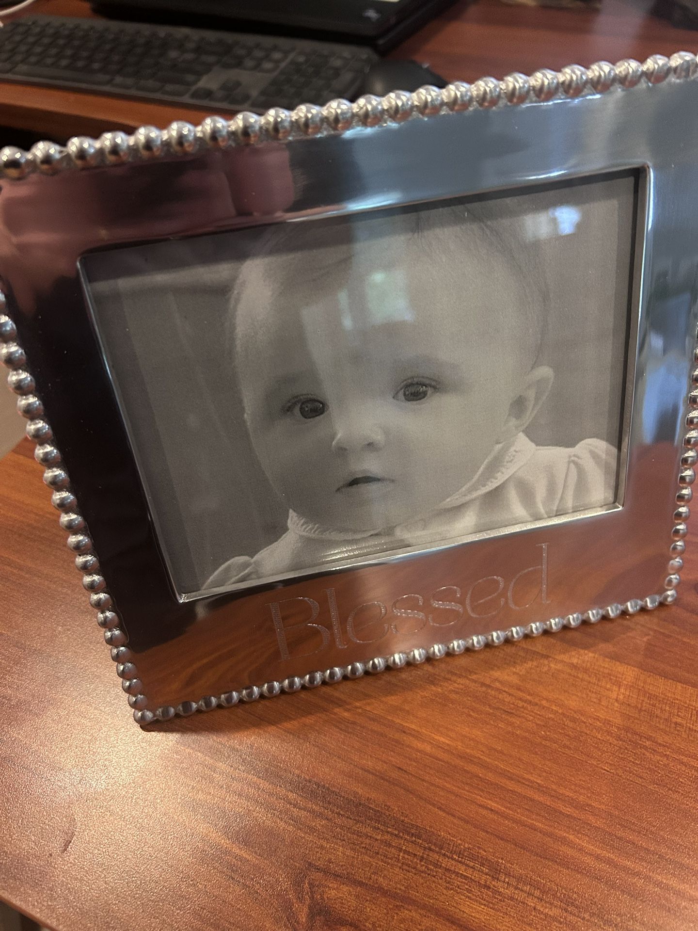 Beautiful silver picture frame has not been used. Size is 5 x 7”.
