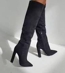 Black faux suede knee high boots with pointed toe and side zip Size 8