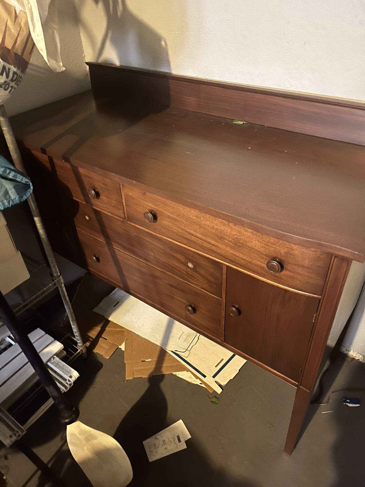 Beautiful Antique Buffet Cabinet refinished to its it its natural beauty. Measures 54” long 21” wide 39” tall . Middle draw needs draw throbs glued back on they are in the draw . This is a beautiful cabinet that makes a center piece of a room Open to offers.